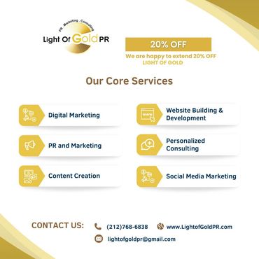There's much to see here. So, take your time, look around, and learn different ways to help you build your brand with Light of Gold PR.